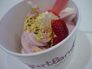ここはセルフサービスで、カップを取り、壁に設置されている16種類のフローズンヨーグルトを好きなだけ絞り出し、30種類の中からトッピングを選び、重量に応じて代金を支払う…というものです。