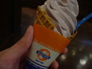 バニラ、チョコ、ストロベリーなんかの王道メニューを食べて普通のアイスと比較してみるのも良かったんですが、やっぱり沖縄らしい味を選びたくて「紅イモ」にしてみました。