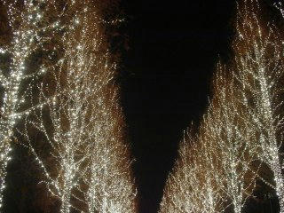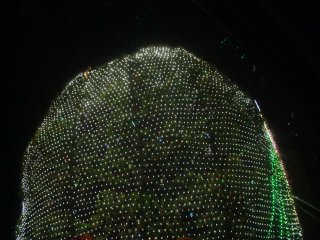 大きな木をそのまま包みこんだような、イルミネーション。
