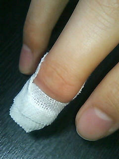 最初は指の第一間接を包むような大きさに貼ってみたんですが、圧迫が足りないからか、止血(指をゴムで縛る)してなかったからか、横からジワジワ血が滲んできます
