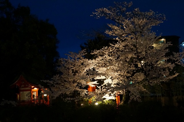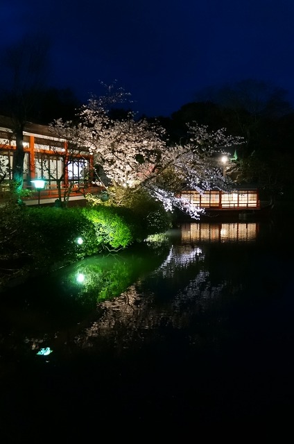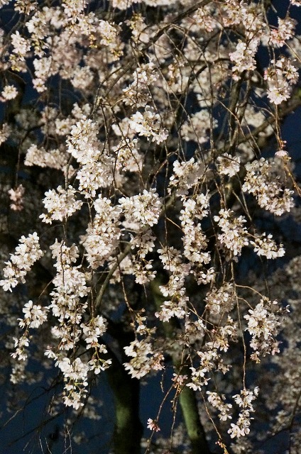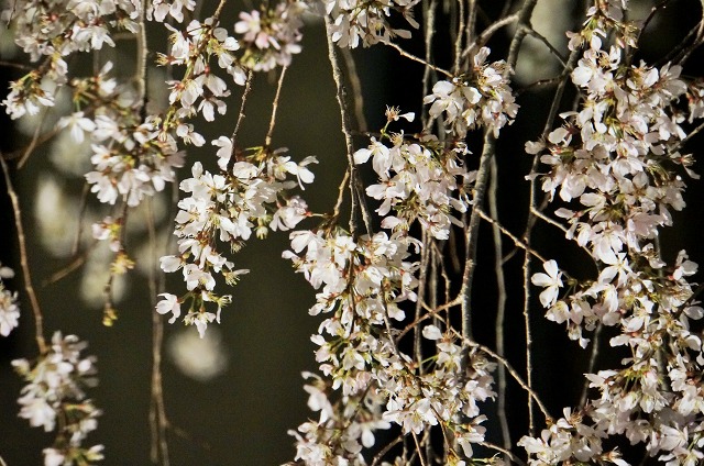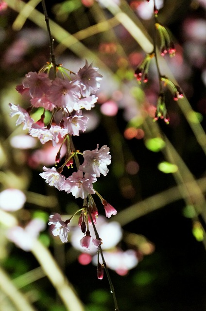闇夜に桜のピンク色が映えますね。