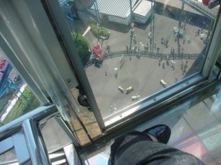 真下が見えるはずの床はちょっとすりガラスっぽい感じなので、そんなに怖くはないと思ったのになぁ。