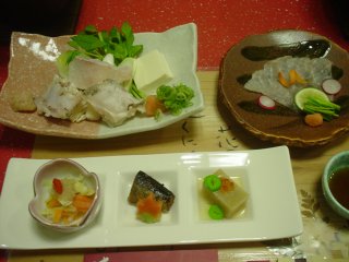 前菜と刺身、そしてクエ鍋の具材です。