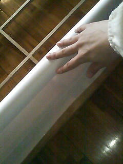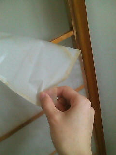 私は真ん中の桟を押さえてから、しわを伸ばすように左右に押さえていきました。