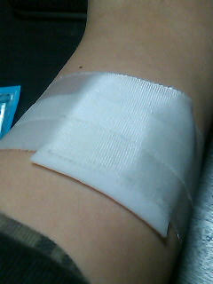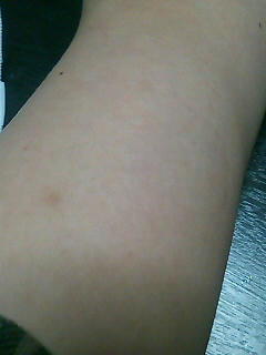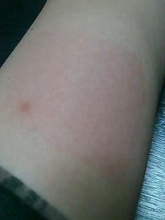 うわ~、アルコール綿のあとがくっきり