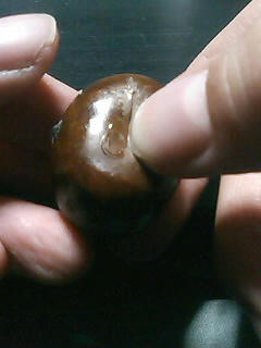 やり方は、平べったい側面に爪でヒビを入れて、中身に傷をつけないように、力を入れすぎずにグルっと1周