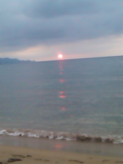 今までまじまじと日が沈むところを見たことはなかったのですが、夕日ってこんなに赤いんですね。