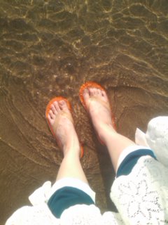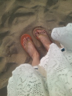 砂がさらさらでビーチサンダルで歩きづらいので、裸足で歩きました。