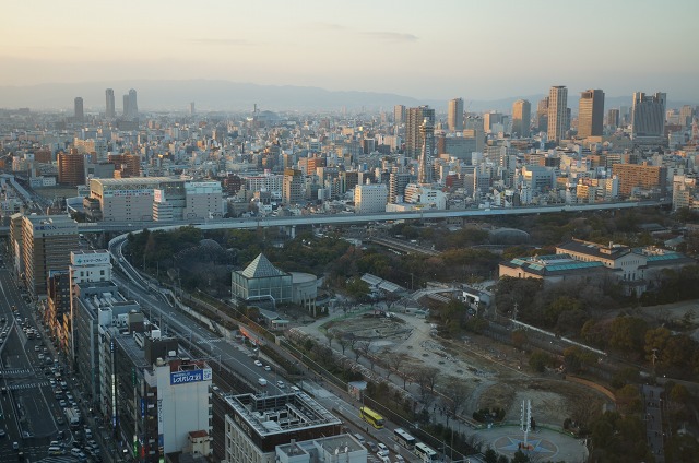真ん中の道路が谷町筋で、ずっとずっと向こうには太陽の塔があるはず。