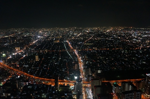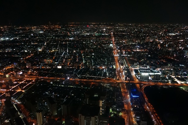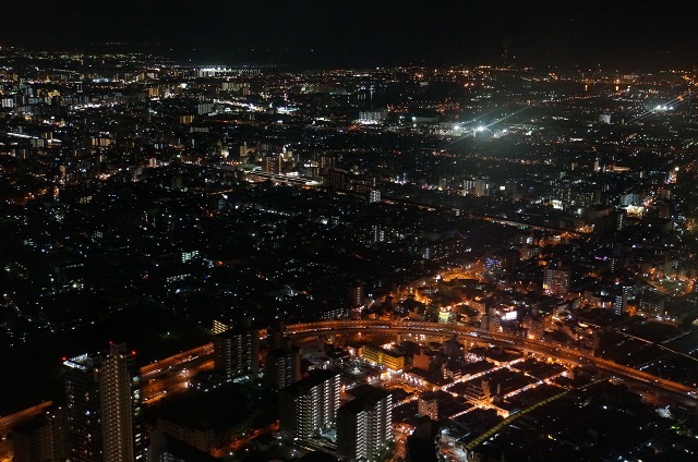さてさて、今日のメインイベント、ハルカス300天上回廊からの夜景をいっぱい撮ってきましたよ~。