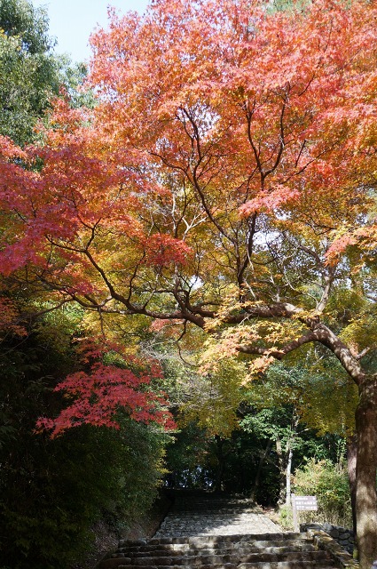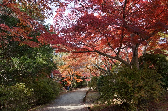 中に入るのは有料ですが、そこまでの参道にも紅葉がいっぱい並んでいます。
