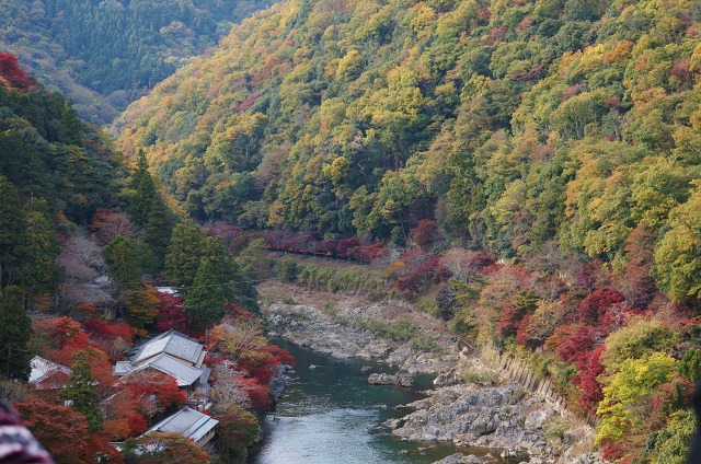 嵐山にはお庭がきれいなお寺がいっぱいありますが、頑張って歩けばタダで紅葉を見られる場所がありますよ。