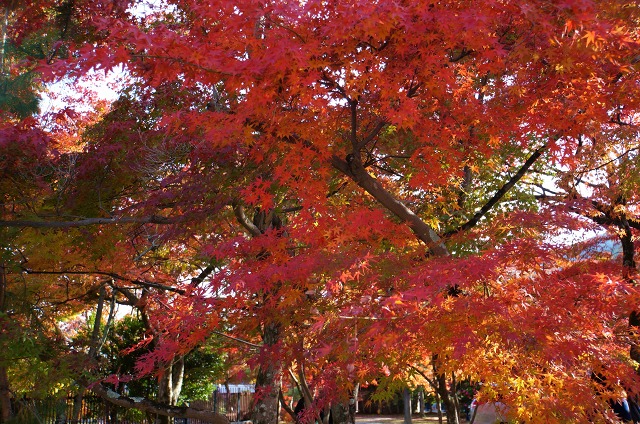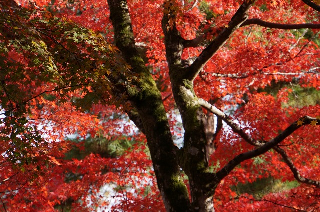 ちょうど見頃で真っ赤な紅葉が何本もあります。