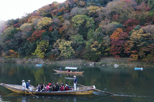 嵐山公園を出てみると、川下りをしてきたお客さんが。