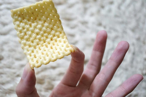 粉がポロポロ落ちるし、お口の周りにもついちゃう。