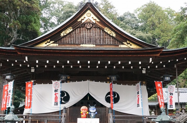 ちょうど七五三のシーズンなので、本殿にはアンパンマン&バイキンマンもいました(笑)
