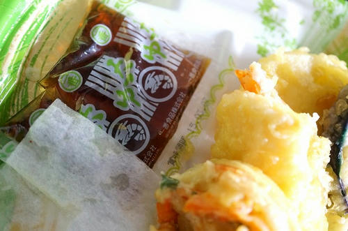 一応、塩で食べようと思ってたけど、天つゆも欲しいなと思ったので自分で作って食べていたのですが、さつまいもの天ぷらの下に天つゆ発見!!