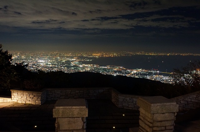 六甲山ガーデンテラスには夜景を見渡せる場所がいくつかあるのですが、一番はこの見晴らしのデッキからの夜景ですね~。
