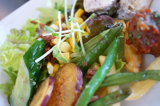 種類は少ないのですが、サラダやお惣菜が好きなだけ食べられます。