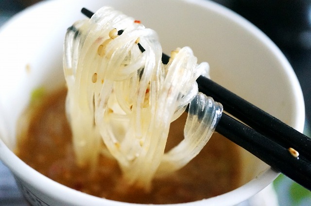はるさめといえば、細くてチュルチュルっと食べられるイメージですが、この商品は少し太めです。