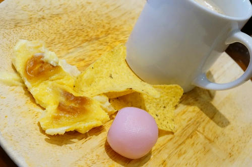 あと、プディングと、トルティーヤチップスと、ちっちゃいいちご大福。