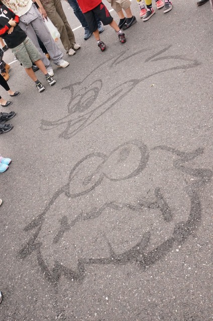 歩いていると、水で絵を描いている清掃員のパフォーマンスを見ることが出来ました!