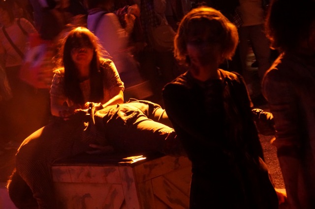 暗いから写真が全然上手く撮れないのですが、ゆらゆら歩くゾンビと生贄になった人…