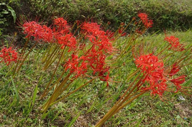 ぐるりと歩いて帰る途中にポツポツと彼岸花も発見。