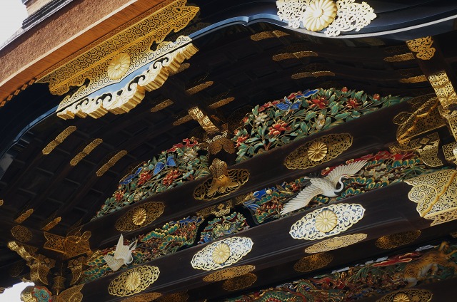 東大手門から少し歩くと、見事な唐門が見えてきます。