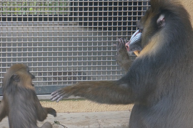 こちらはお母さんマンドリルで顔の色はまだ大人しめなんですが