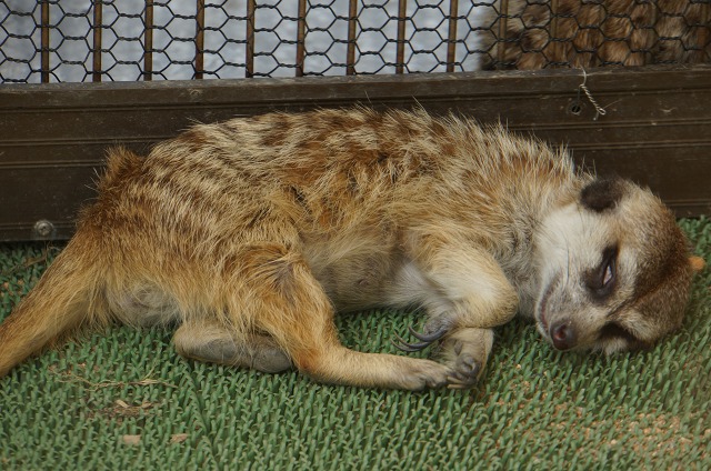 そして、この動物園で一番不気味な寝顔を見せていたのがこちらのミーアキャット。