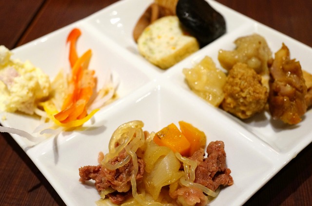 肉じゃが、煮物、サラダなんかがありましたよ。