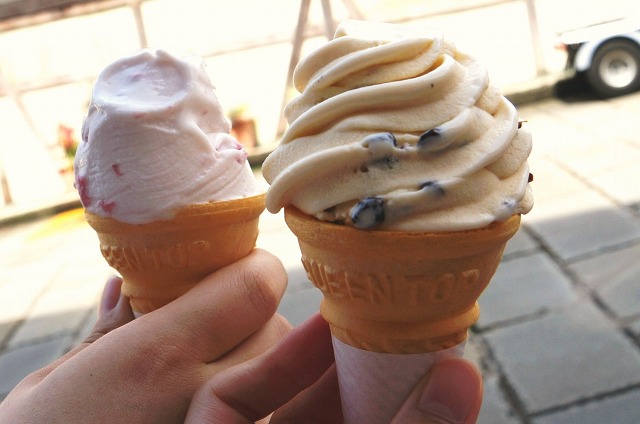 バスの集合時間まで近くのお店でソフトクリーム食べながらのんびりしてました。