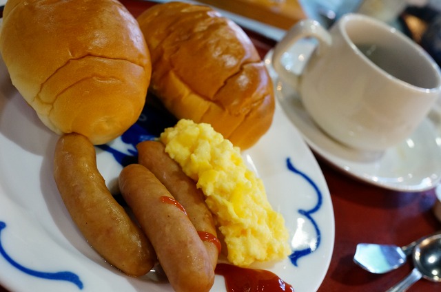 郷土料理もあったけど、私はいつものウインナー、玉子、パン、コーヒーで。