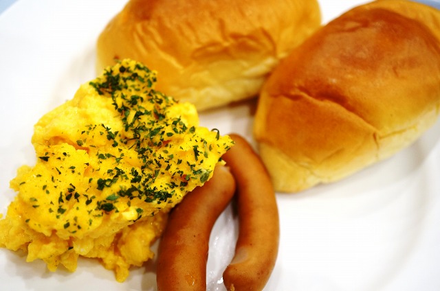 私はいつもパン、ウインナー、玉子、そしてコーヒーをチョイスします。