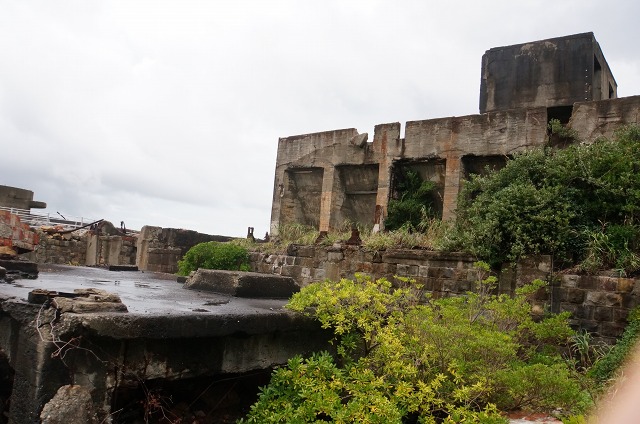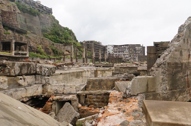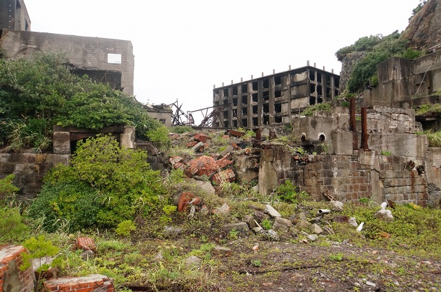 こちらも崩れ方が激しいですが、炭鉱の事務所なんかがあったところですね。