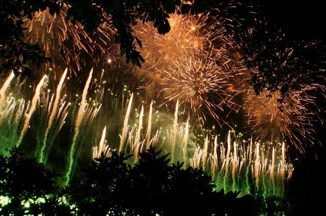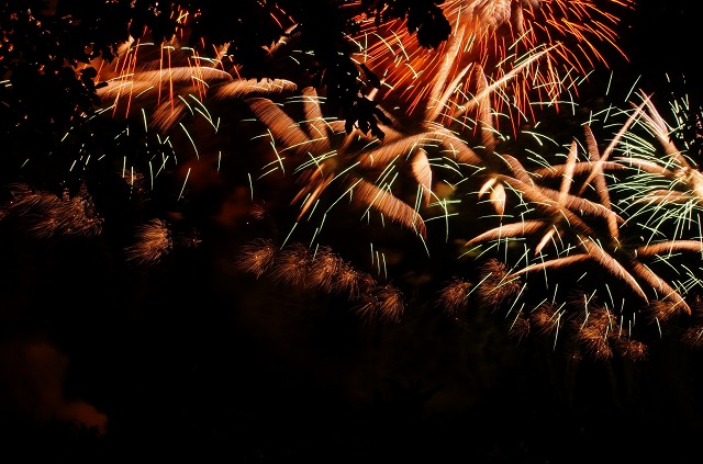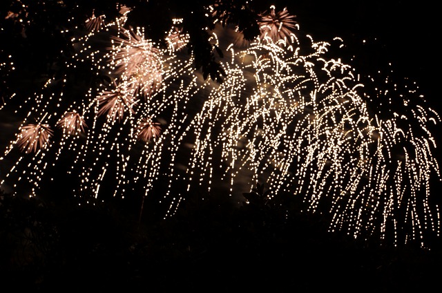 木と木の隙間に見えてくれる花火って少なかったので、単発のではこんな感じのしか撮れず。