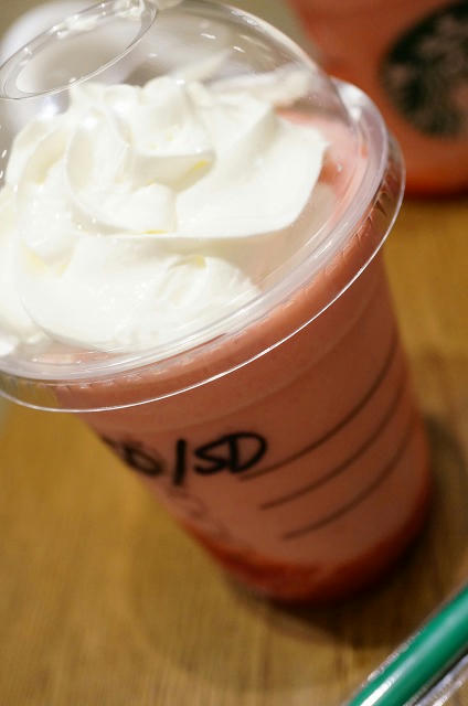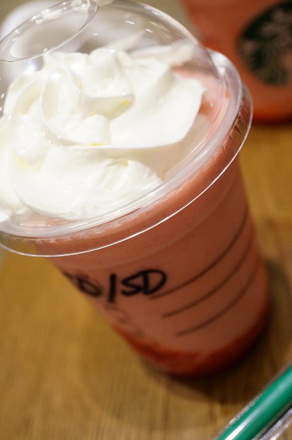 生クリームは胸やけするので苦手なんですが、よーくよく混ぜて飲むと、甘酸っぱい苺とフラペチーノと程よくマッチして美味しかったです。