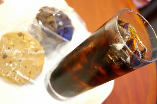 アイスコーヒーと大きなクッキー、マフィンを頂きました☆