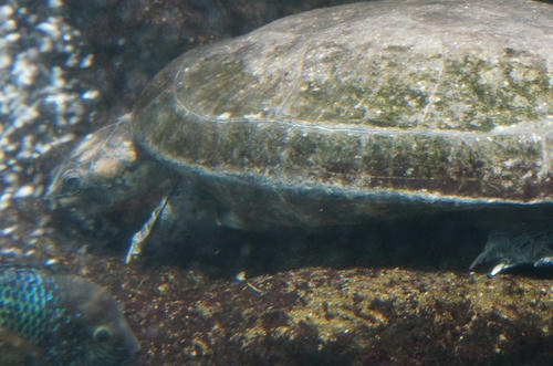 水槽の端で泳ぐ?カメを発見!!