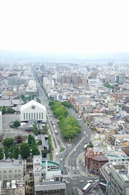 西本願寺方向。二条城とかもこの方面ですが、隠れて見えないんですって。