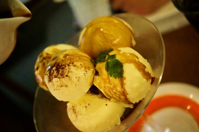 アイスクリームに熱いエスプレッソをかけて頂きます。